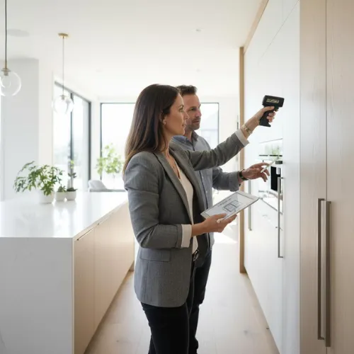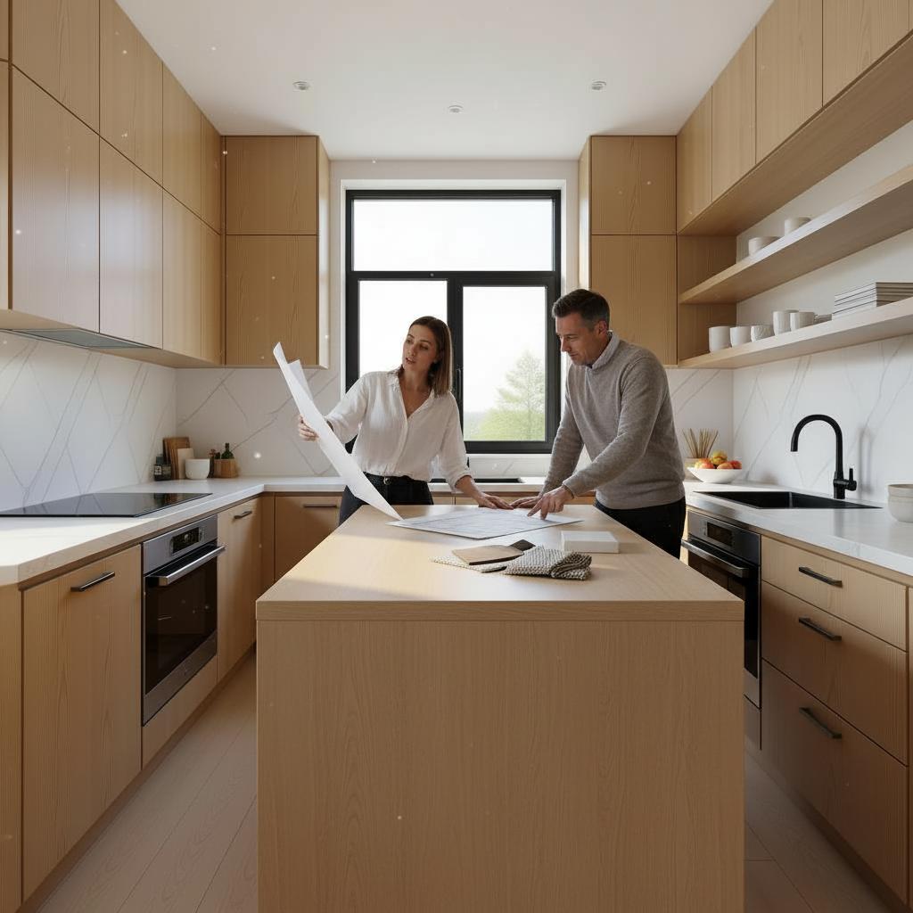 Visitamos tu hogar para entender cómo vivís y qué necesita tu cocina. Medimos el espacio real, analizamos tus rutinas y conversamos sobre tus preferencias. Así empezamos a diseñar una cocina que no parte de un catálogo, sino de tu día a día.